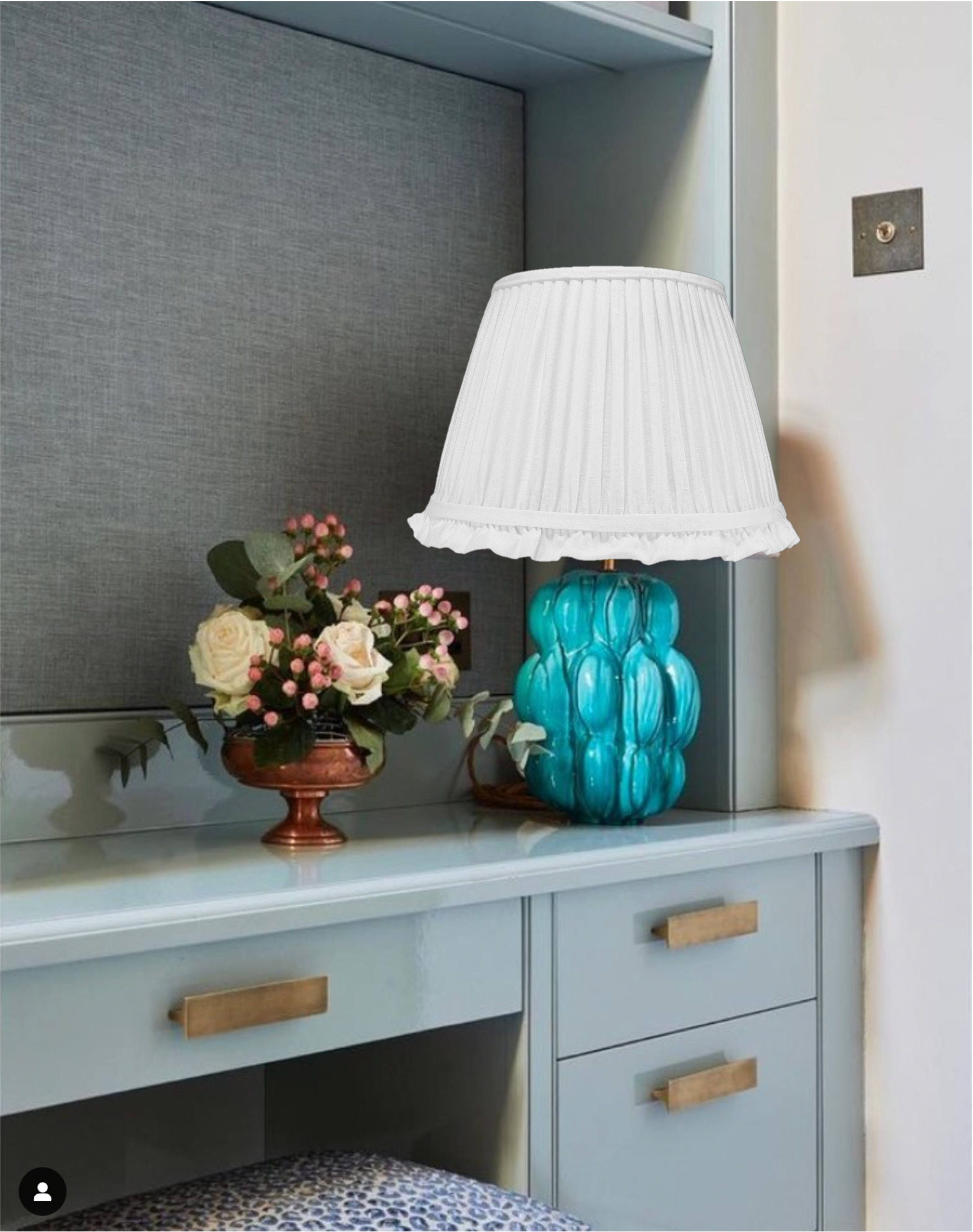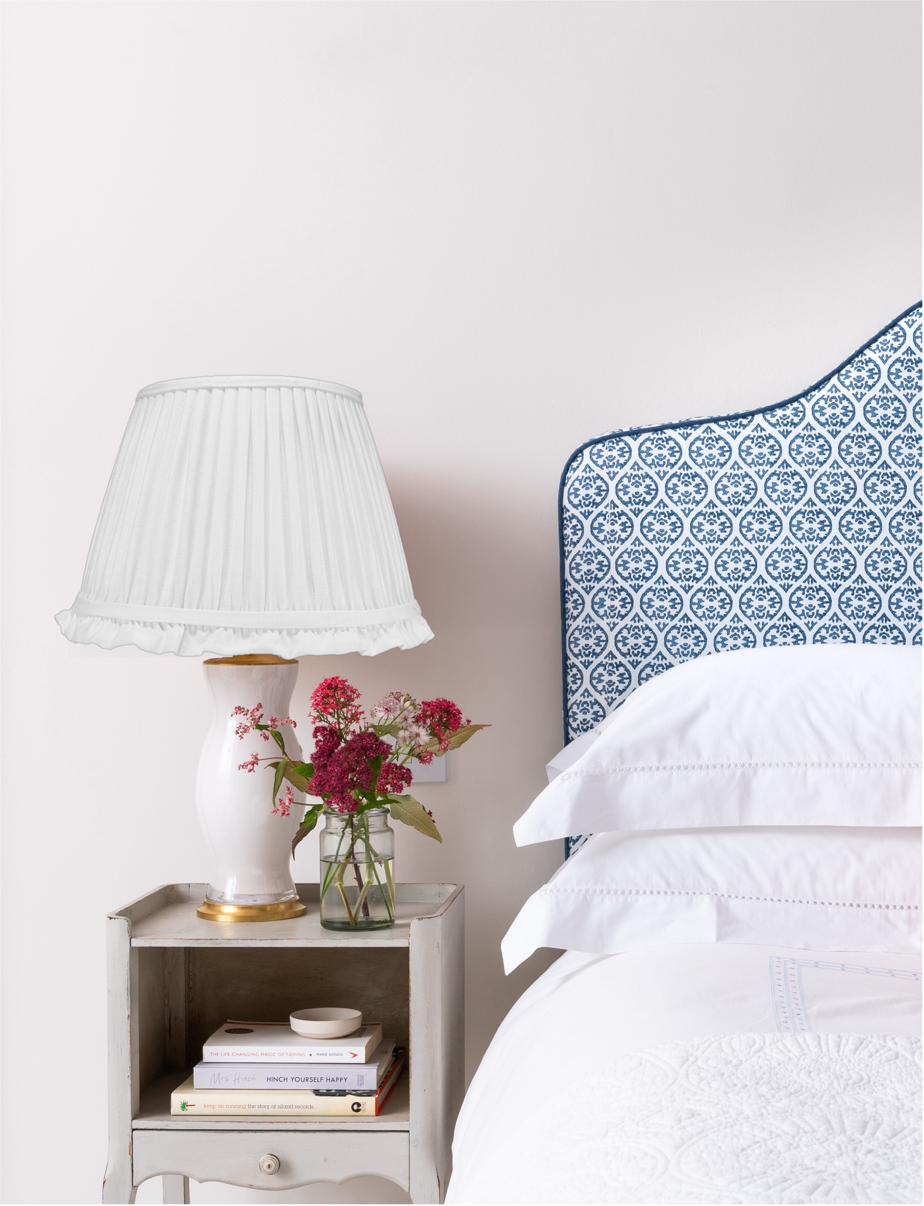 The bedroom image is from Jessica Buckley Interiors featuring our 18” cream linen shade.