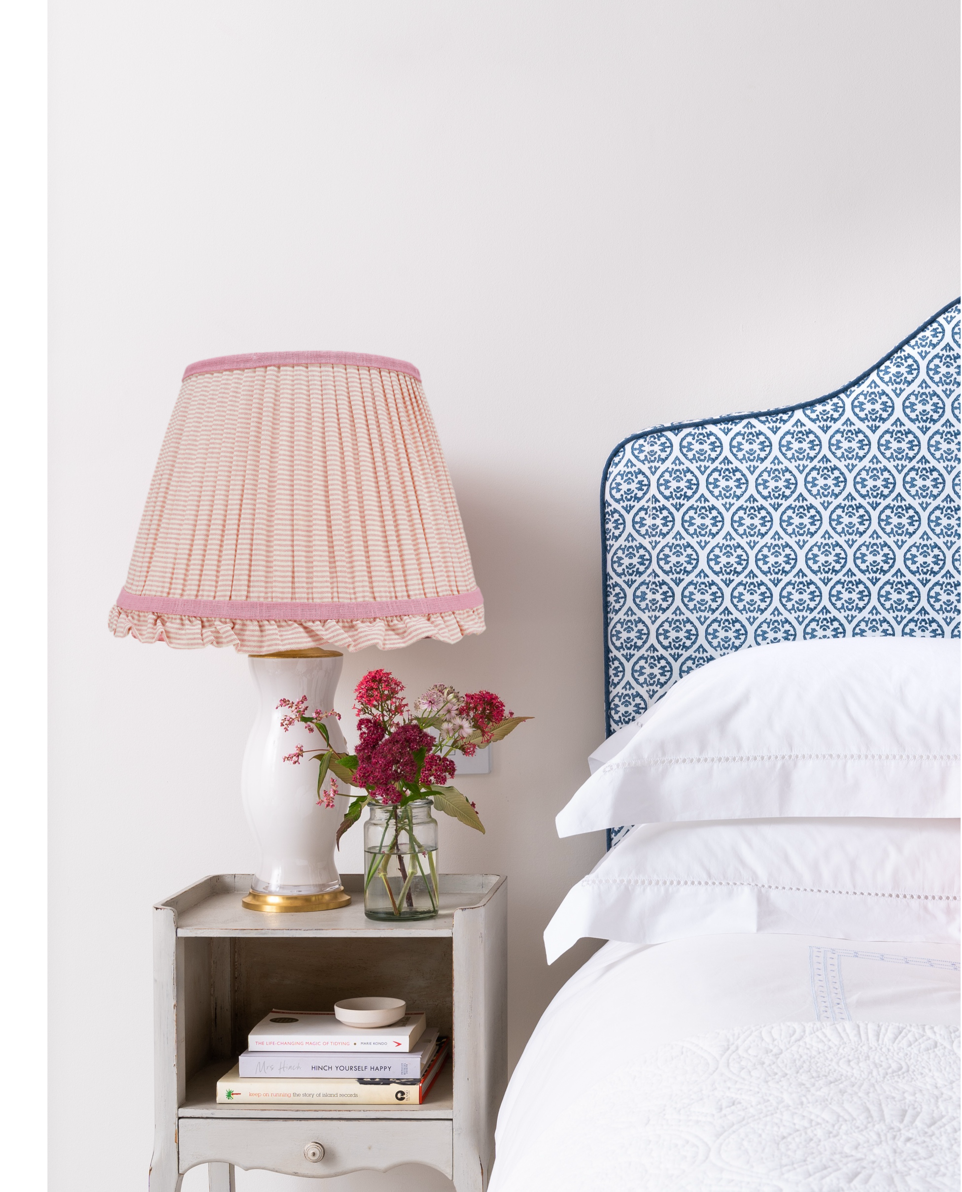 Our lampshades are hand-stitched and pleated in England, on bespoke frames that are specially made for our lamps.