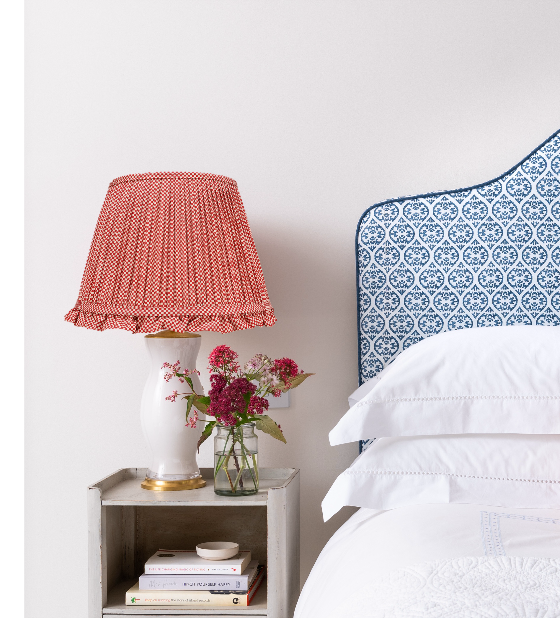 Our lampshades are hand-stitched and pleated in England, on bespoke frames that are specially made for our lamps.