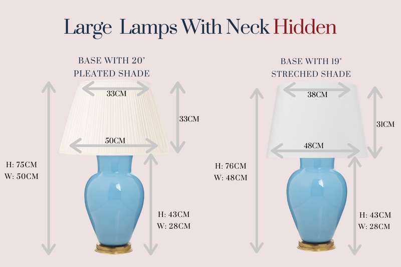 You can choose if you want to stretch out the lamp, sitting the lampshade up high (so the neck and brass top are visible). Otherwise you can sit the lampshade below (so no neck and brass top are visible) which reduces the dimensions of the whole lamp, making it more compact.